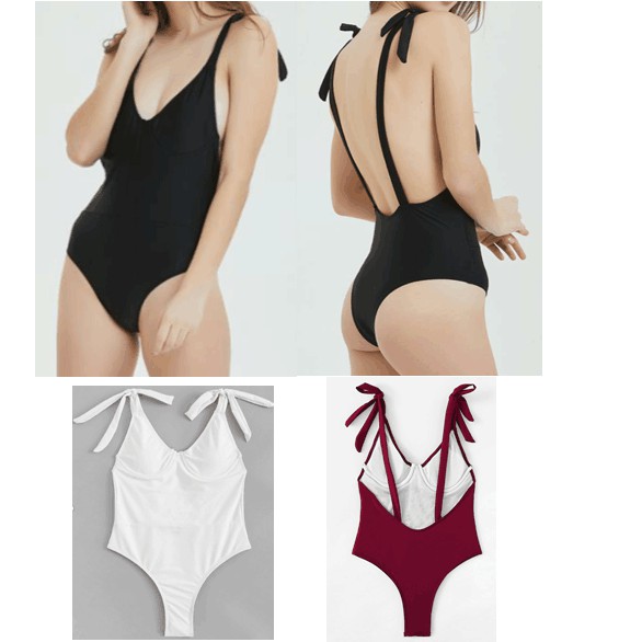 Backless One Piece Swimsuit Monokin Korean Swimwear Tie Back Push