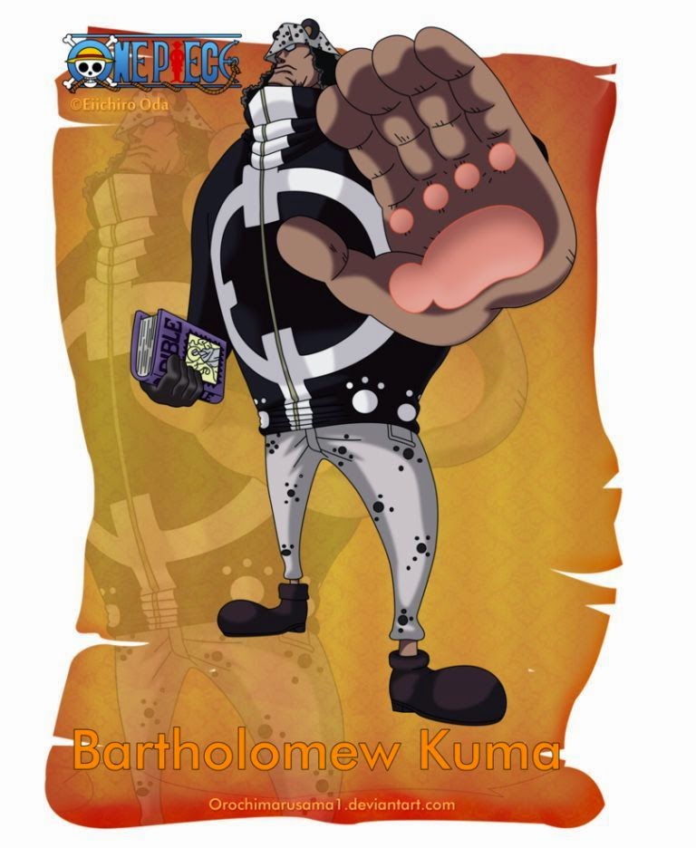 One piece kuma bartholomew shishibukai buffer nikyu nikyu no mi corsair bear paw bible devils fruit pirate bear shonen japanese manga japan. He is as tall as a normal bear considerably taller than common humans. 13 0 13 1 one piece manga and anime vol.