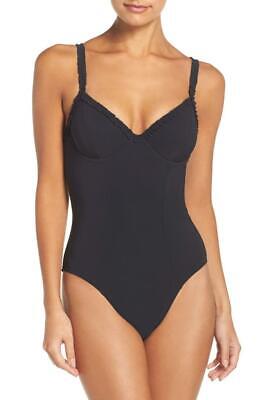 Black one piece swimsuit ruffle. Plus size evri printed wrap one piece swimsuit sale 31 99. 4 5 out of 5 stars 107. Chrysa one shoulder floral ruffle one piece swimsuit black.