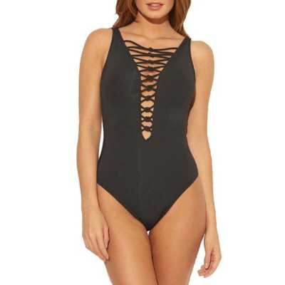 1 pc aruba bleu black bleu blue cherry wine cool multi cut it up dont mesh with me hole in one. Bleu rod beattie hole in one over the shoulder lattice plunge one piece swimsuit. Strappy plunge one piece swimsuit bleu rod beattie go for the gold 109 00.