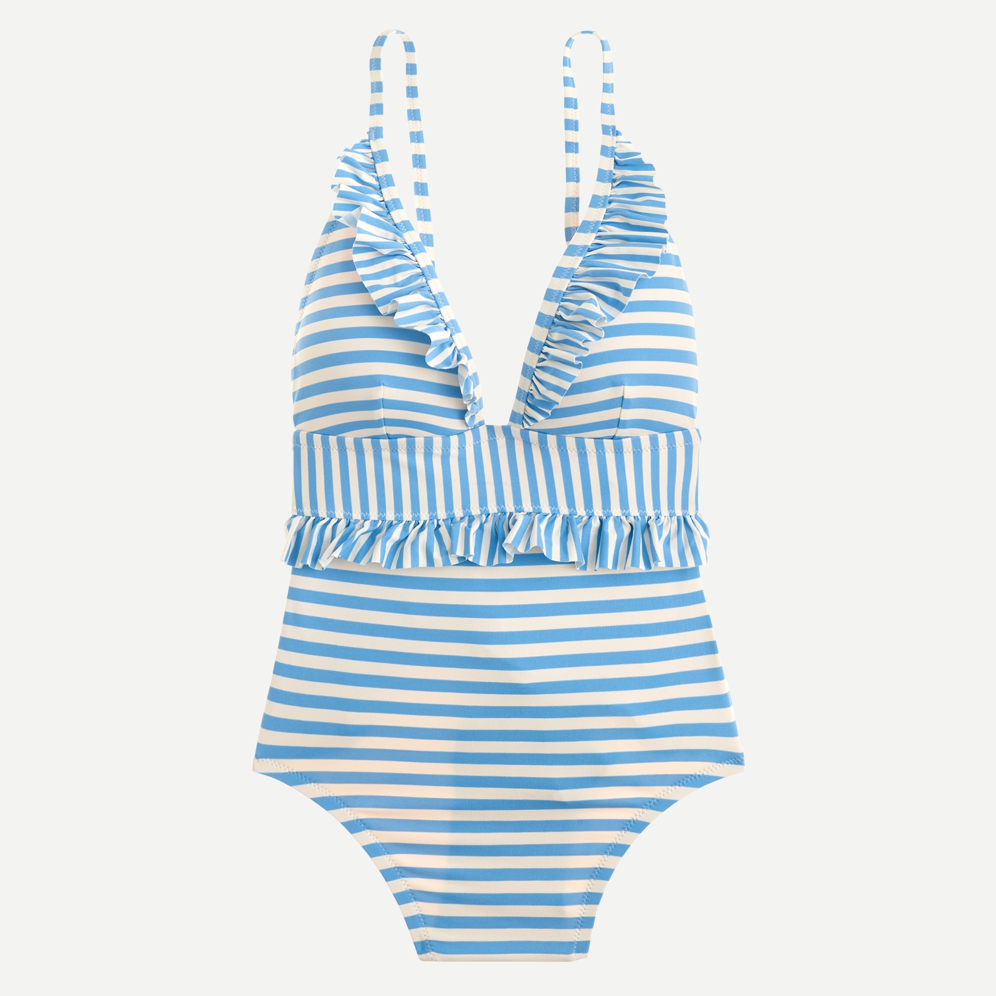 J Crew Ruffle Plunging One Piece Swimsuit In Mixed Stripe For Women