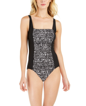 Our wide selection is elegible for free shipping and free returns. Free shipping both ways on calvin klein solid shirred panel one piece swimsuit black from our vast selection of styles. Calvin klein women s diamond medallion maillot one piece swimsuit.