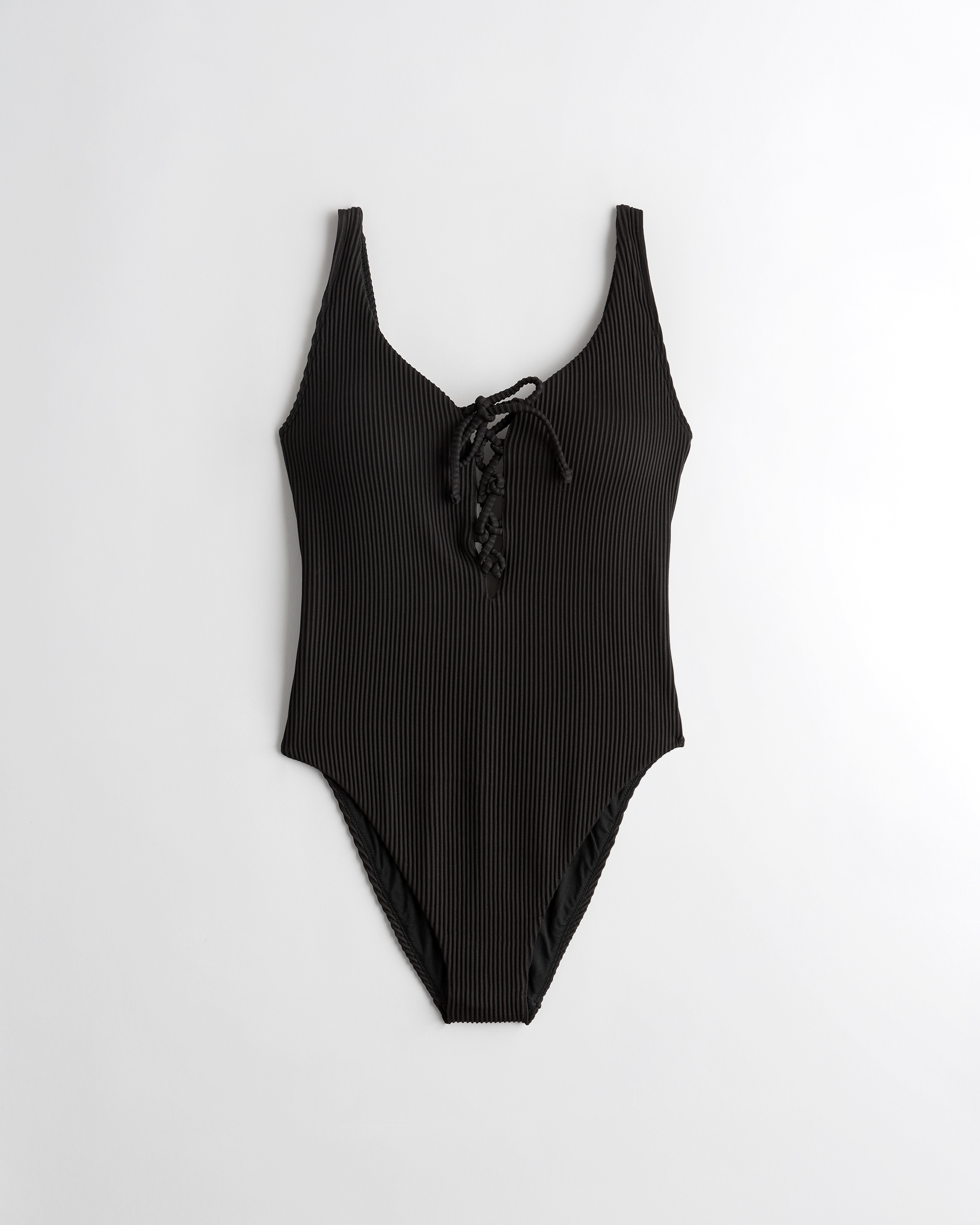 Girls Lace Up Ribbed One Piece Swimsuit Girls Clearance
