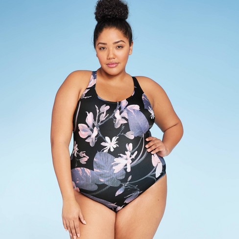 Women S Plus Size One Piece Swimsuit All In Motion Black Floral