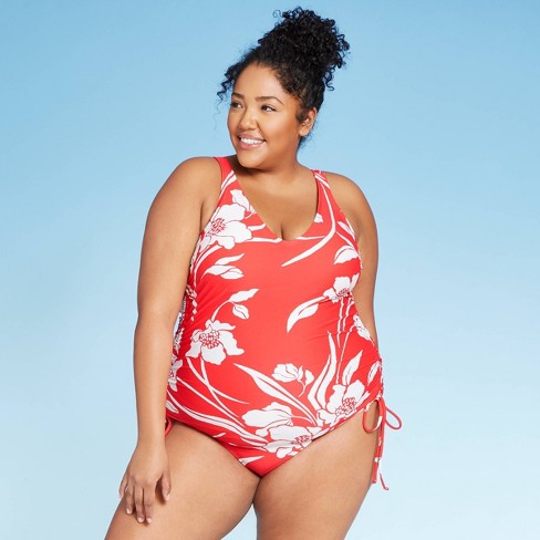 Women S Plus Size Side Cinch One Piece Swimsuit Kona Sol Red