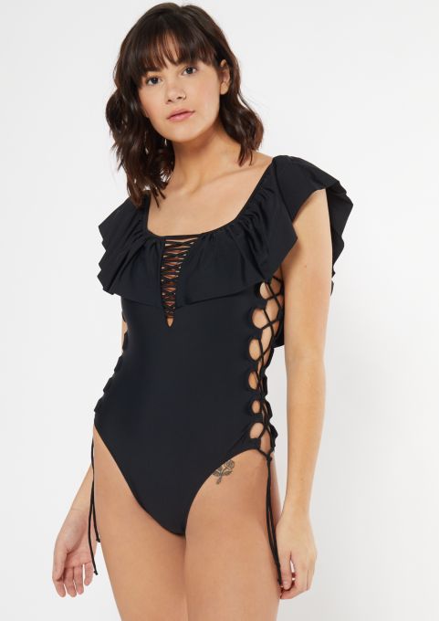 Swim Krissy Black Lace Up Flounce One Piece Suit Poshmark