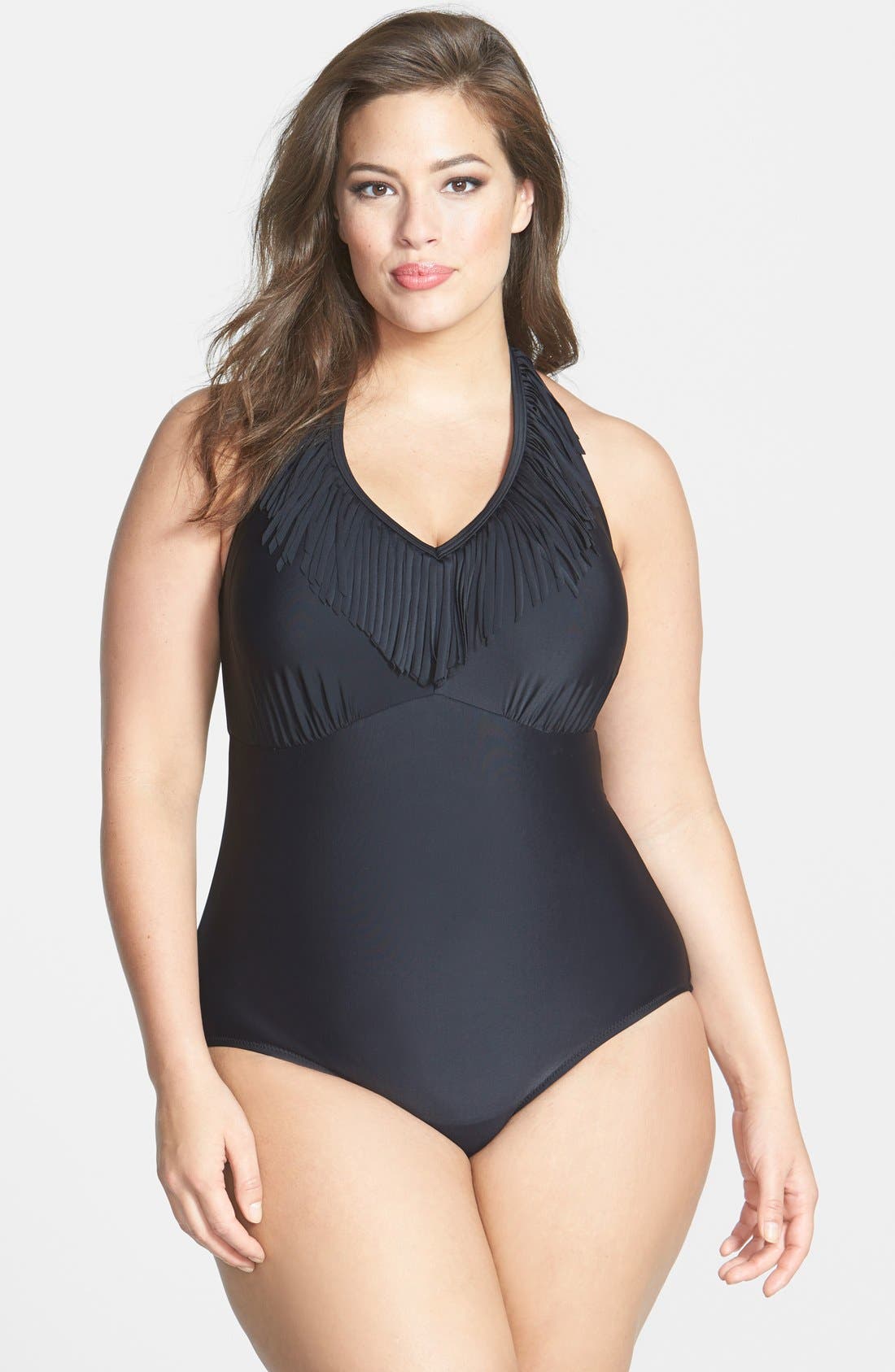 Swimsuitsforall swimsuits for all women s plus size fringe bandeau one piece swimsuit. Pandolah women plus size tassel fringe padded bikini bandeau one piece swimsuits. One piece bathing suits can help you feel confident and sexy while showing off your curves at the beach or the pool.