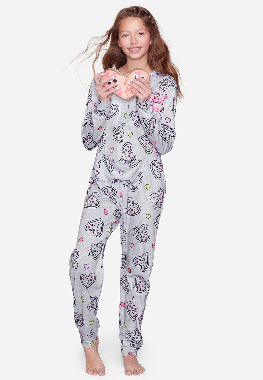 Trendy one piece pjs for tweens stock her up on the latest one piece pj looks she loves most with justice s collection of cute one piece pajamas for tween girls. Macy s star rewards members. Buy products such as rene rofe girls rainbow unicorns blue footed pajamas xl 14 16 at walmart and save.