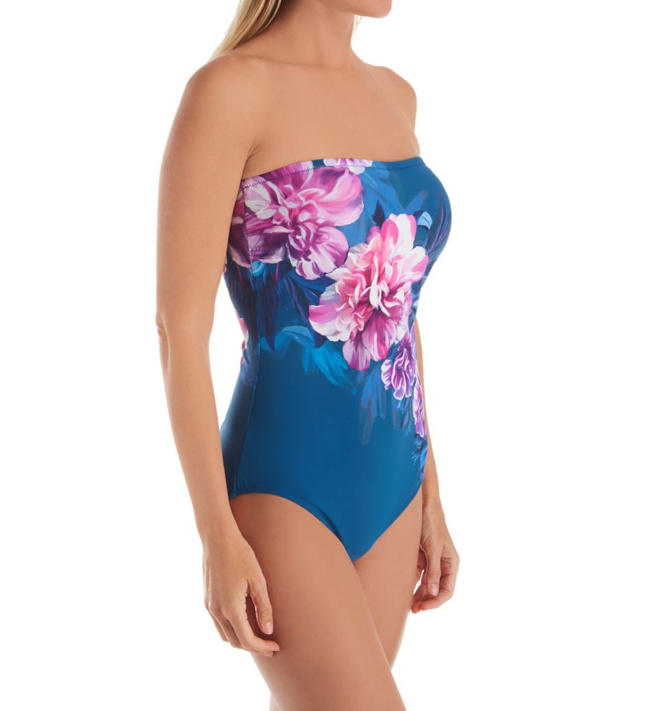 Gottex fiji navy and pink bandeau one piece swimsuit.