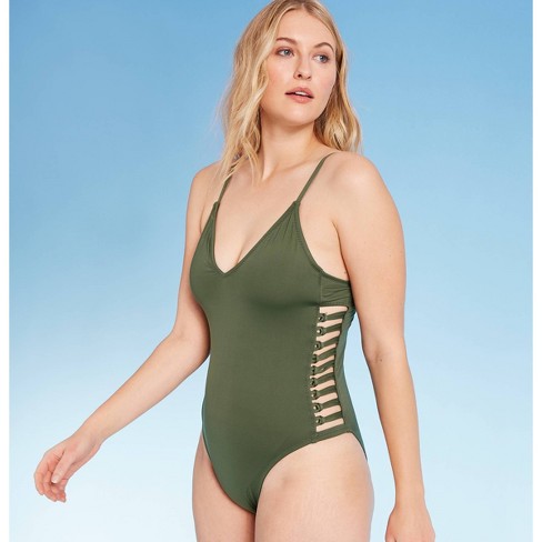 Sexy Olive Green Swimsuit Lace Up One Piece Swimsuit