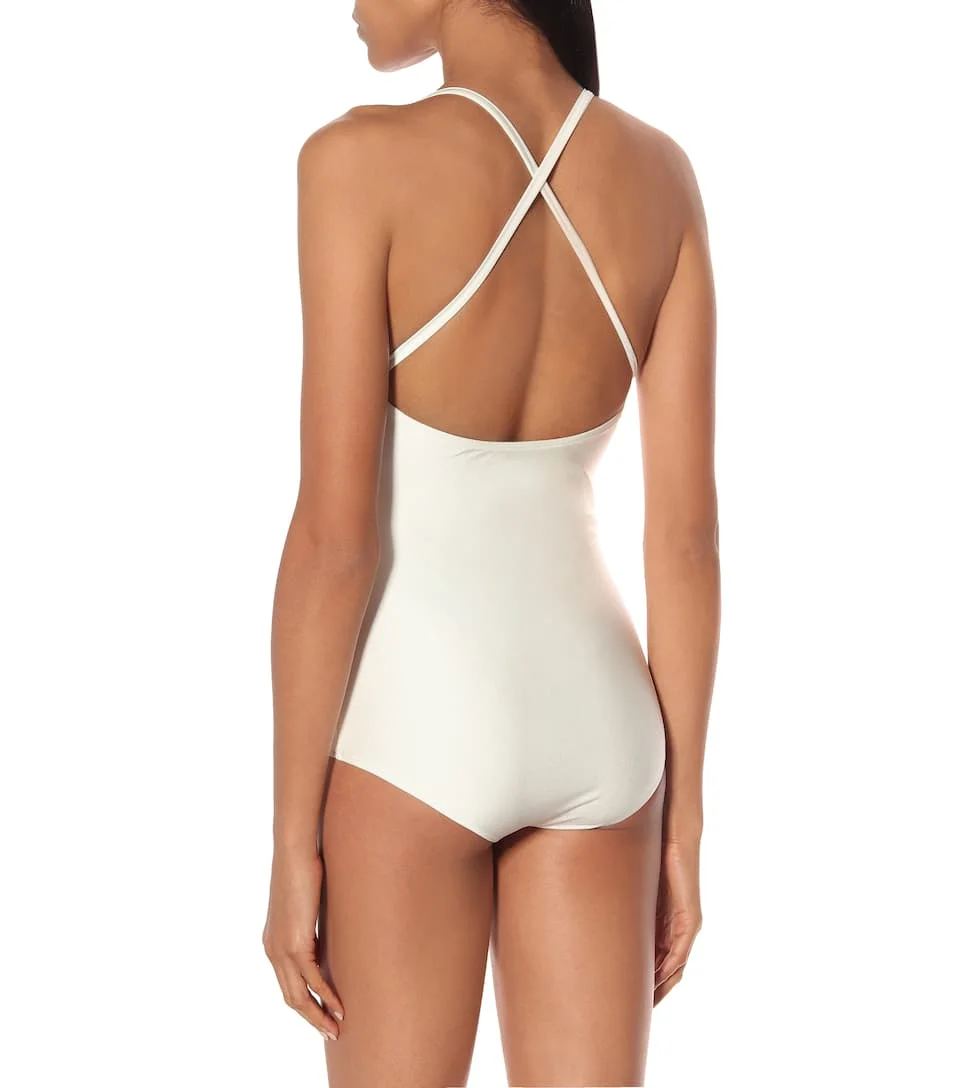 Gucci Synthetic Cross Back Logo One Piece Swimsuit In White Lyst