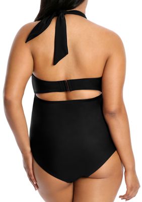 Lysa Plus Size Halter Black One Piece Swimsuit Belk