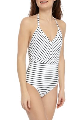 Tommy Hilfiger Striped Halter Top One Piece Swimsuit Shopstyle
