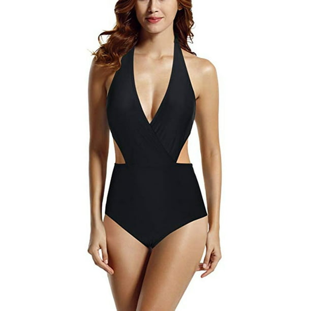 Shekini Womens Monokini Swimwear Deep V Neck Plunge Backless High