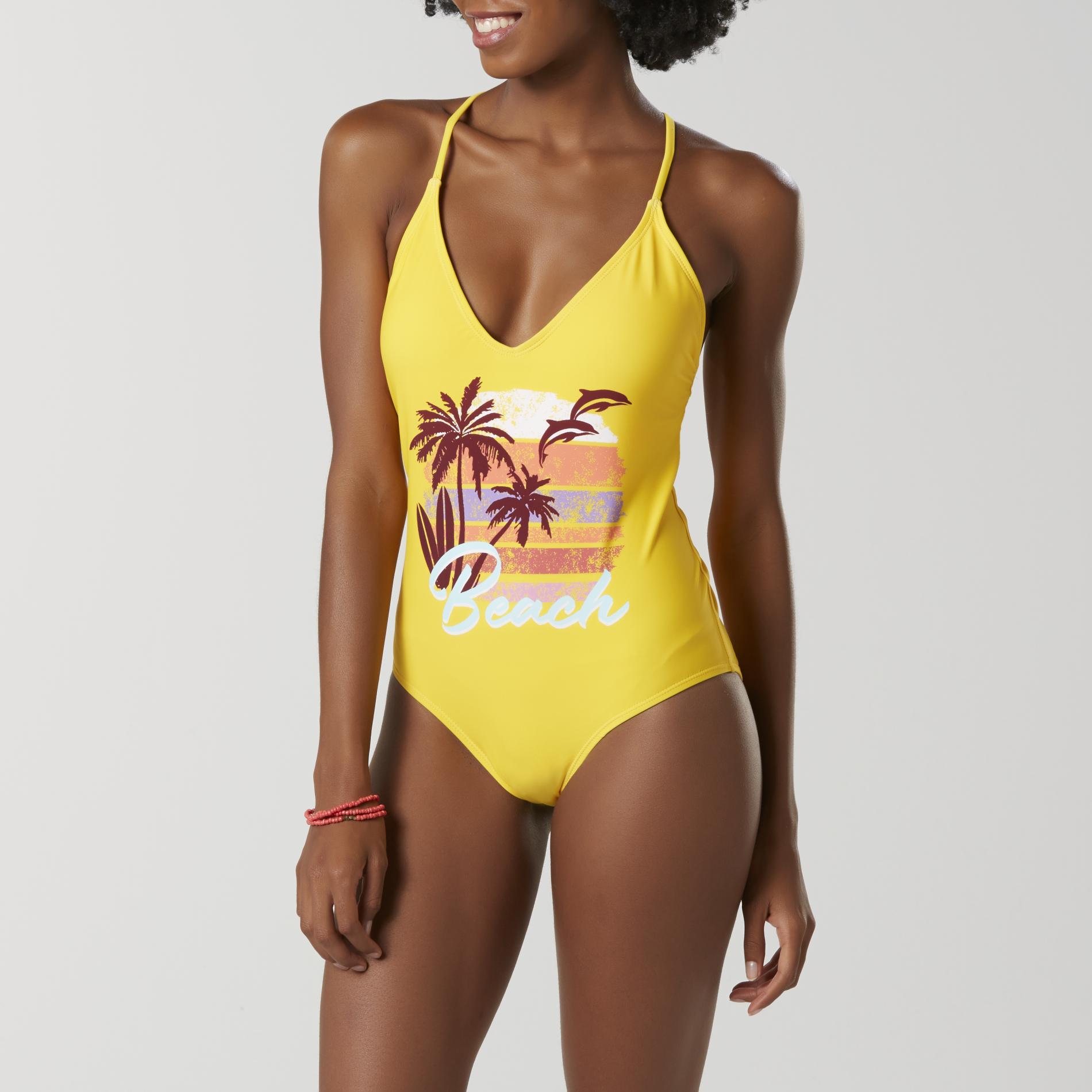 Juniors one piece swimsuits. Juniors mesh covered high leg one piece swimsuit xhilaration neon lime. Whether you like to spend your summer days playing beach volleyball or just lounging by the pool stylish one piece swimsuits are a necessary part of any woman s sunny weather wardrobe.