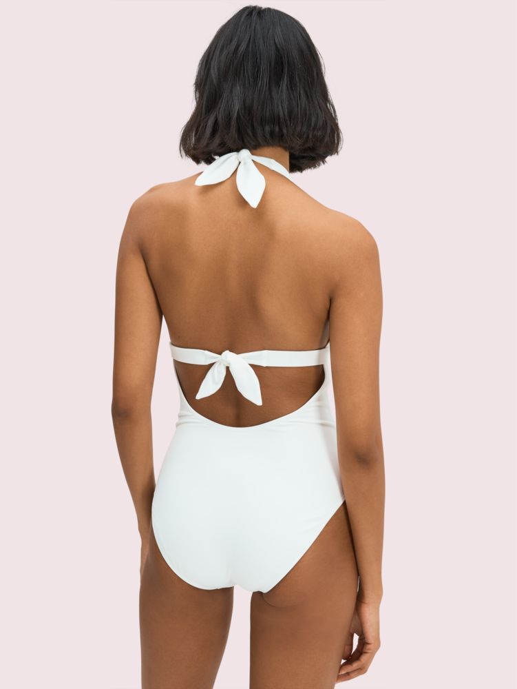 Find women s swimsuits with modern sensibility from one pieces bikinis more. Kate spade new york womens grove beach knotted halter one piece swimsuit. Kate spade swimwear started back in 1993 when kate brosnahan spade a former accessories editor at mademoiselle set out to design the perfect handbag.