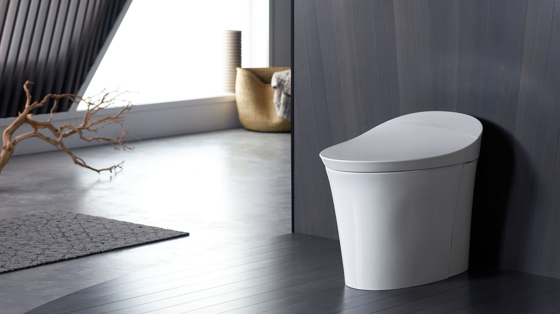 Kohler karing intelligent one piece toilet. Use the advanced touchscreen remote to create your preferred settings for warmth cleansing and drying. The next generation karing intelligent toilet features an ergonomic seat design for a streamlined look with the comfort of integrated personal cleansing. Compact streamlined one piece intelligent toilet with integrated personal cleansing.