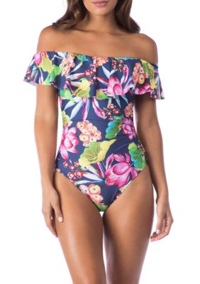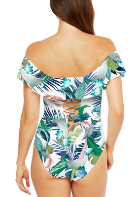 La Blanca Tropical Rain Ruffle Off Shoulder One Piece Blum S