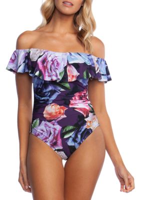 La Blanca One Piece Painted Off Shoulder Ruffle Mio Gateway To