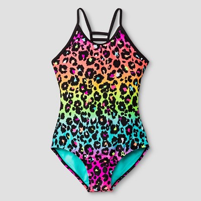 Girls Leopard Print Rainbow One Piece Swimsuit Xhilaration