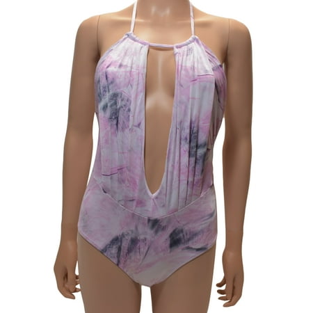 Choose from ruched v neck high neck mesh lace up monokini cut out and halter one piece suits thats sure to make a great addition to your swimwear collection. Also set sale alerts and shop exclusive offers only on shopstyle. Sleek knit fabric shapes this ultra cute one piece with a deep v neckline and wide tank straps.