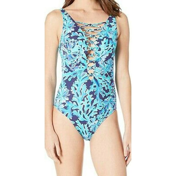 One piece swimsuits 16 refine by swim. Lilly pulitzer bathing suit swim one piece small pink blue sea shell halter s. This one piece has moderate coverage and key features like removable cups adjustable back straps and crisscross strapping that provides support.