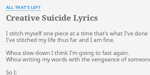 Creative Suicide Lyrics By All That S Left I Stitch Myself One