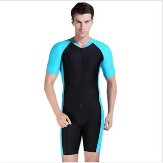 Men One Piece Swimsuit Short Sleeve Rash Guards Swimwear Lycra