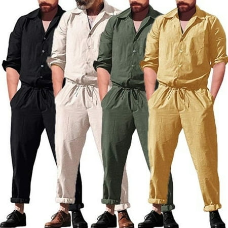 Men One Piece Sets Jumpsuit Long Sleeve Tops Full Length Pants