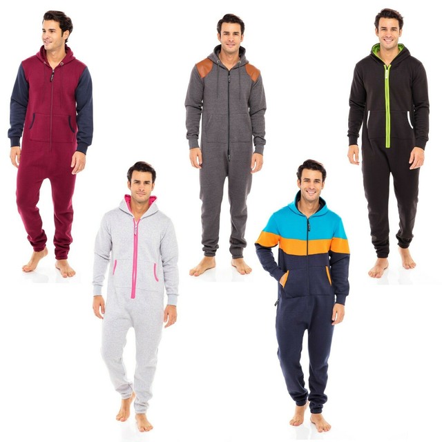 All In One Men S Jumpsuit Fleece Nigtwear Pyjama Hoodie Zip Onesie