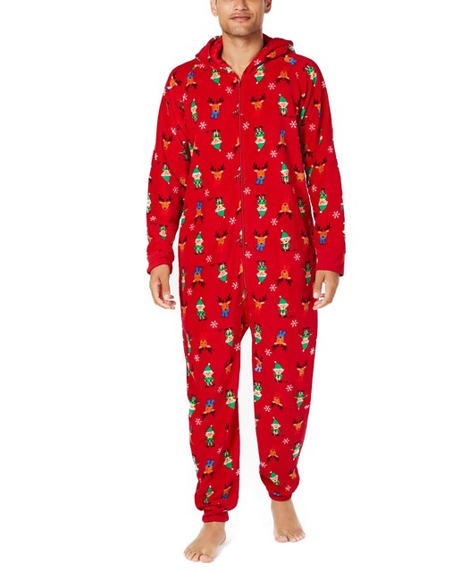 Family Pajamas Men S Elf And Reindeer Print Hooded One Piece Pjs L