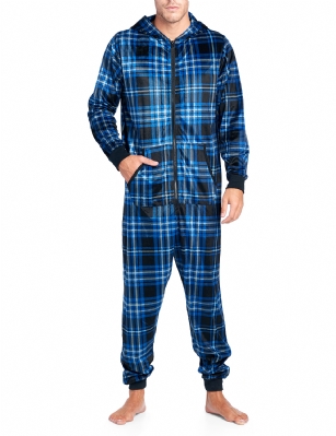 Clothing One Piece Pajamas With Tartan Plaid For Adult Men Onesie