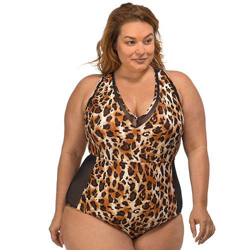 Women S Plus Size Slimming Control Mesh Inset One Piece Swimsuit