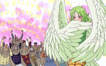 She became a harpy by giving up her human arms and legs and replaced them with large bird parts. Monet foi uma harpia que se apresentou como uma espécie de secretária para ceasar clown do centro de pesquisa em punk hazard. On punk hazard she went undercover as the secretary of caesar clown.