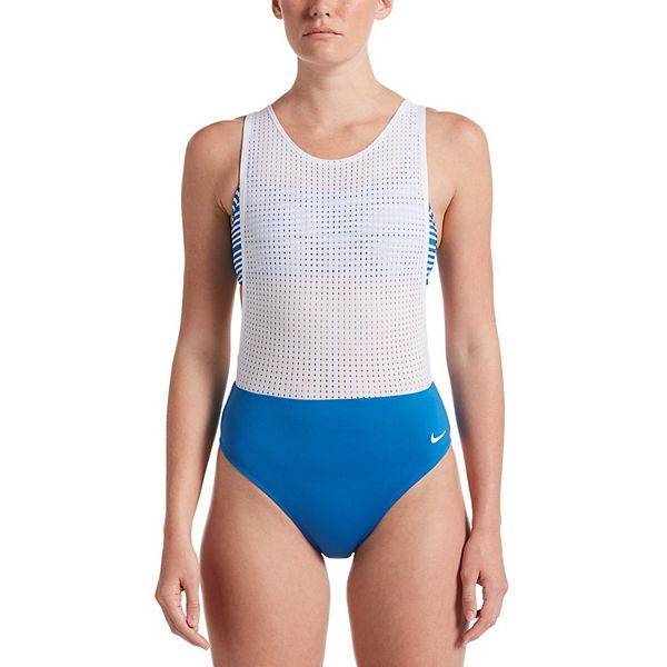 Nike mesh one piece swimsuit. Women s sport mesh solid racerback legsuit is a high coverage performance swimsuit designed for speed. Nike swim offers men s women s and kid s swimwear in a variety of styles. The women s swimsuit features a half zip to make it easy to wear and customize the style.