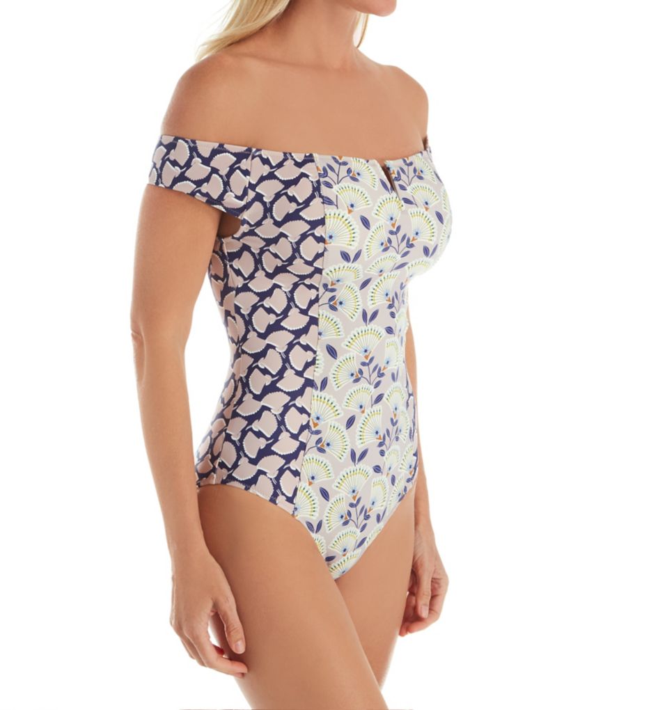 Off the shoulder one piece swimsuit tankini. Stunning florals and wide supportive straps elegantly connect an eye catching square back to a bust boosting twist front bodice. La blanca women s island goddess off shoulder ruffle one piece swimsuit. 4 5 out of 5 stars 183.