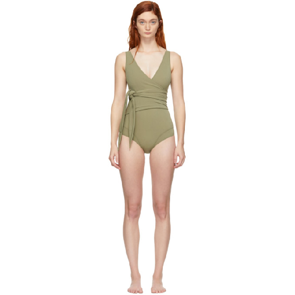 Lisa Marie Fernandez Dree Louise Crepe One Piece Swimsuit In Olive
