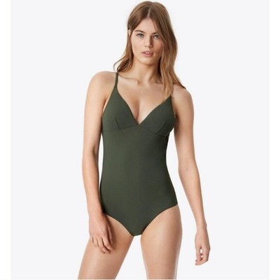 Tory Burch Xl Marina One Piece Swimsuit Olive Green 198 Maillot