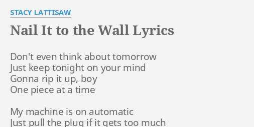 Nail It To The Wall Lyrics By Stacy Lattisaw Don T Even Think