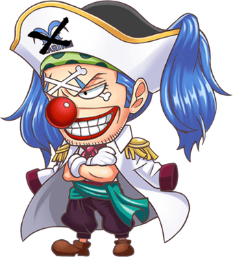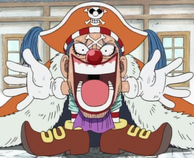 After his fight with luffy buggy was sent flying to another island with several body parts missing. Buggy s face is always covered with make up just like a clown and the motifs change from time to time. He frequently tends to mishear people as talking about his nose when in reality they are talking about something completely different and sometimes he.