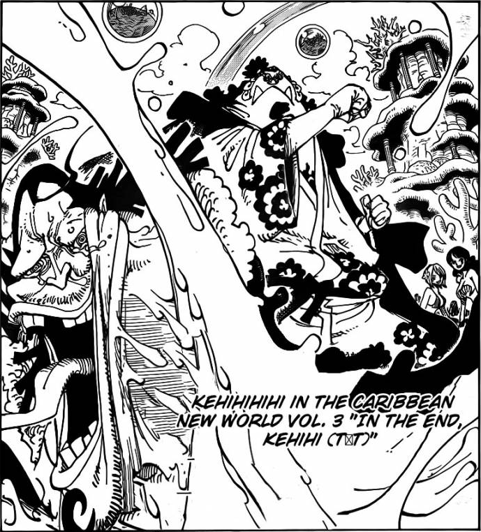 He is a minor antagonist during the fish man island saga and the central character of the caribou s kehihihihi in the new world cover story.