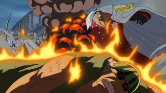 Curiel fought against gecko moria one of the royal seven warlords of the sea during the battle to save ace.
