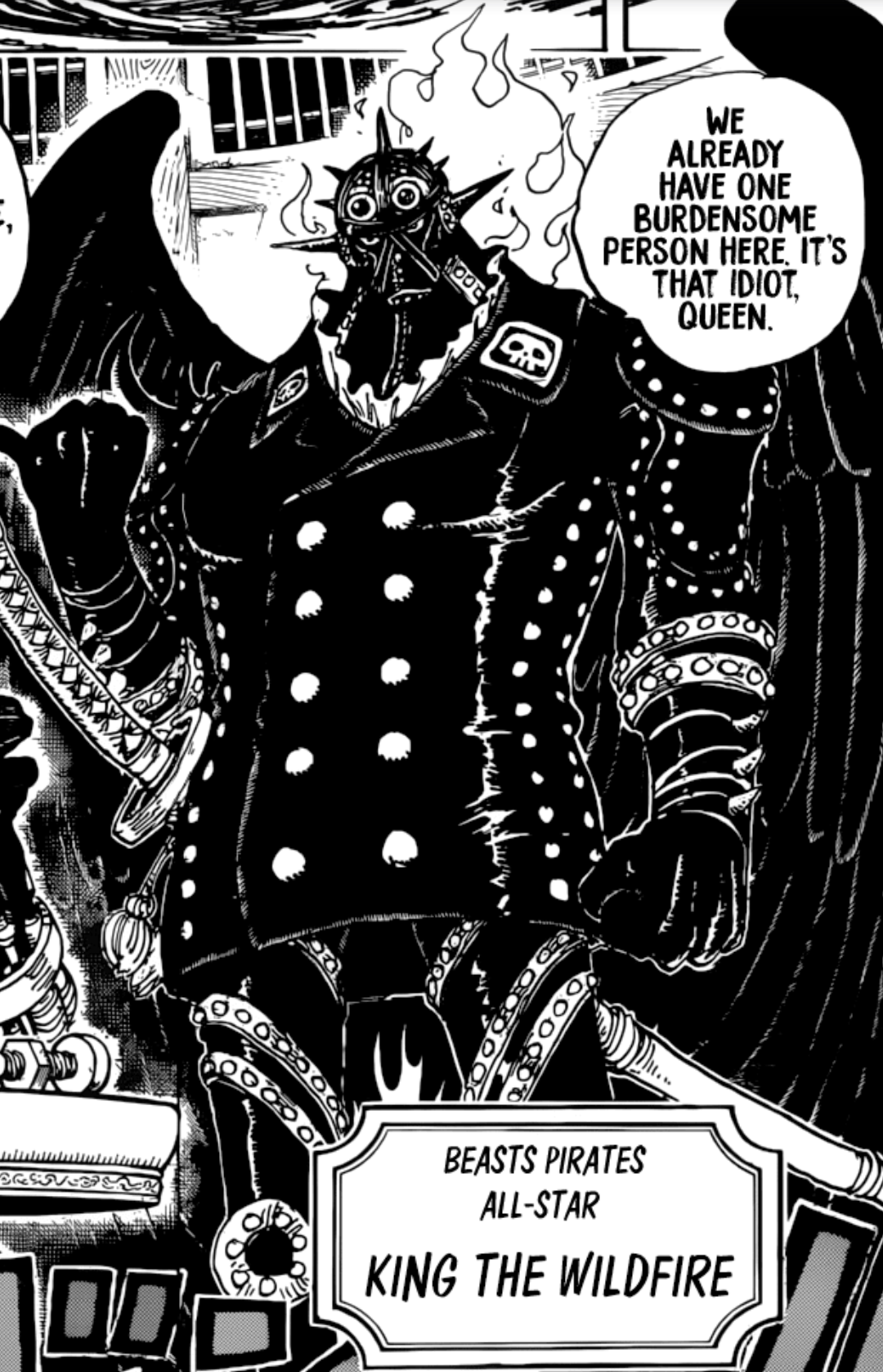 One piece magellan and king. His face in particular is designed in such a way that it looks like a hannya mask. As to why king is not warden anymore. King the conflagration is an all star of the beasts pirates kaido s three closest confidants known as the disasters.