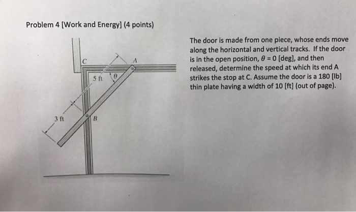 The Door Is Made From One Piece Whose Ends Move Along The Horizontal And Vertical Tracks Assume The Door Is A 180 Lb Thin Plate Having A Width Of 10 Ft Suppose That