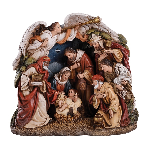 One piece nativity set. Kurt adler 11 piece nativity set make sure this fits by entering your model number. Cb beautiful christmas 10 5 h one piece tabletop nativity tree and stable. You could choose to leave the nativity scene on through the night or turn it off before going to bed.
