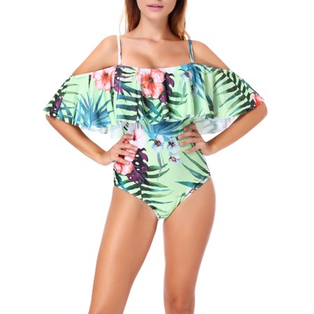 One piece off the shoulder swimsuits for women at macy s come in all colors and sizes. Free shipping by amazon. Ozowo women s one piece swimsuits vintage off shoulder swimwear ruffled printed bathing suits backless monokini swimsuits 4 1 out of 5 stars 87 20 99 20.