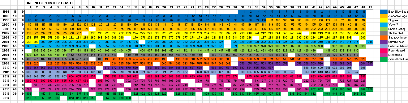 One piece on hiatus. In 2013 the manga was on hiatus for two issues because oda was hospitalized. It has 24 episodes and adapts the 8 kanzenban volumes of the manga which is about 13 volumes of one piece. One piece returns from hiatus with luffy breaking quarantine in the first post hiatus episode of one piece luffy breaks quarantine and facial masks in an attempt to stage a prison break.