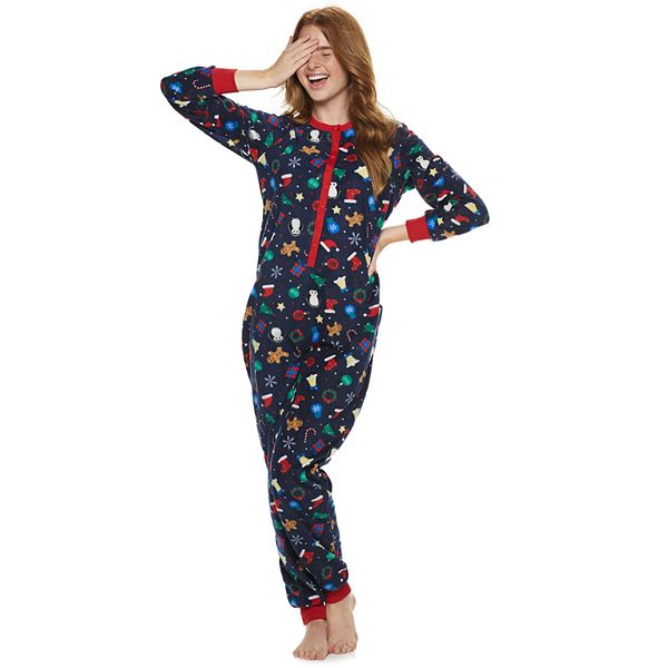 Christmas pajamas union suit with flap on back and reindeer monogram on front. Vnvne women s one piece onsie print sleepwear ugly christmas pajamas jumpsuit rompers clubwear nightwear. Silver lilly buffalo plaid womens one piece pajamas adult unisex union suit with drop seat butt flap.