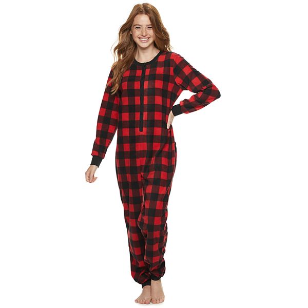 Silver lilly buffalo plaid womens one piece pajamas adult unisex union suit with drop seat butt flap.