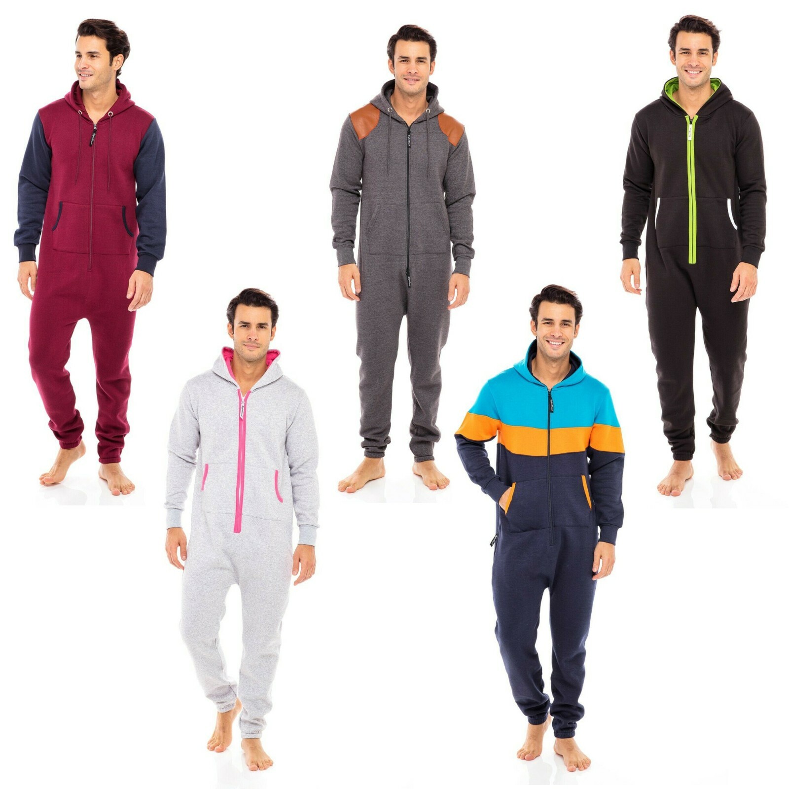 Mens Hooded Pajamas Set Onesie Jumpsuit Adult One Piece Pajamas
